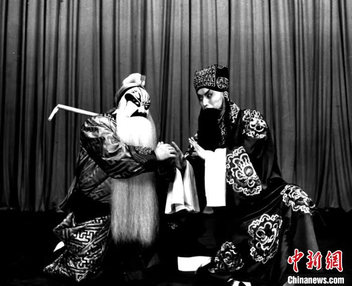 《将相和》老照片,李少春(右)饰蔺相如,袁世海(左)饰廉颇。国家京剧院供图