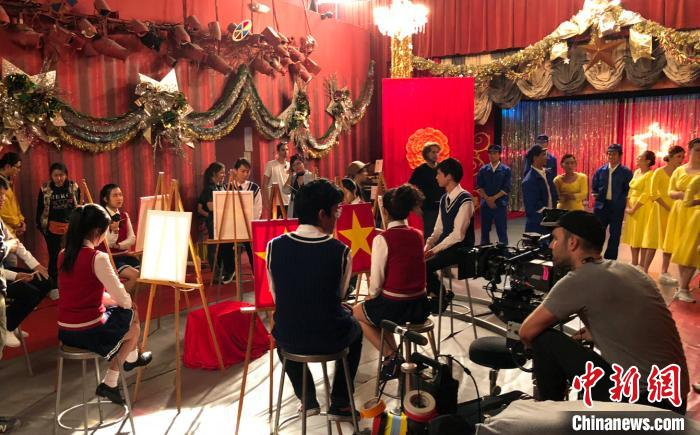 李盎然在片场查看场景。 钟欣 摄