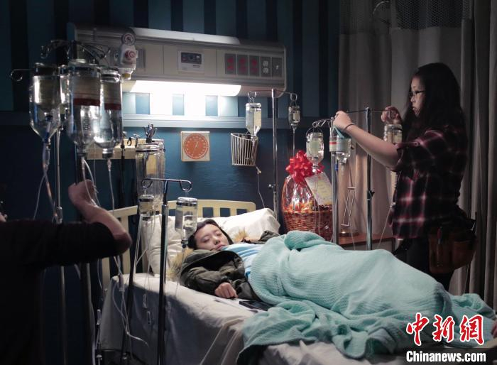 李盎然在片场工作。 钟欣 摄