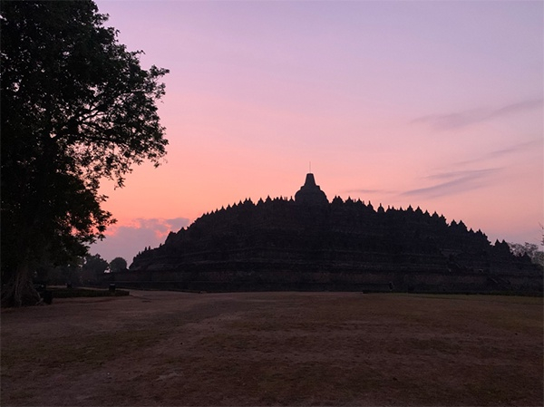 凌晨5点左右,婆罗浮屠被包围在紫罗兰色中