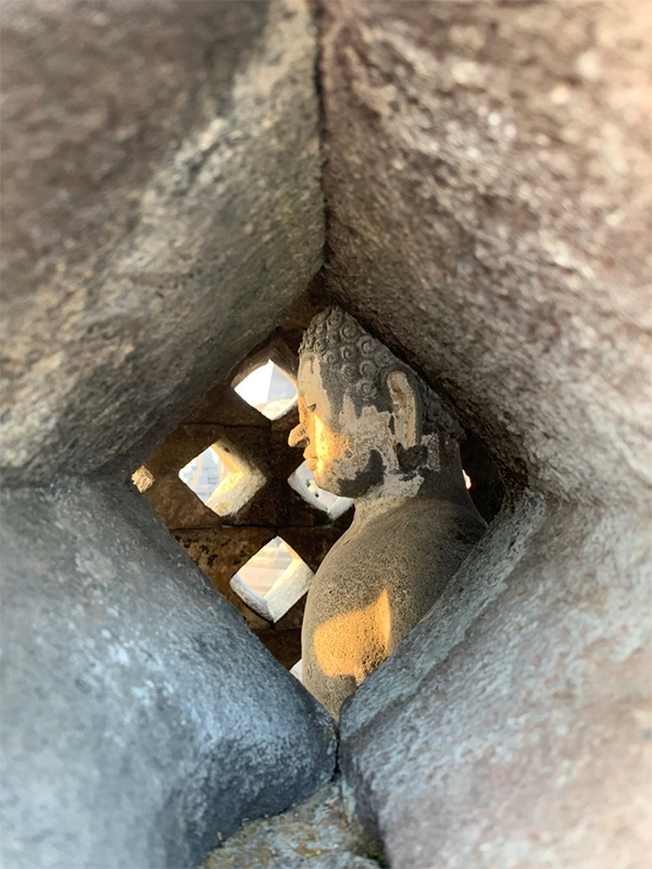 爪哇岛经历了长达三百多年的荷兰殖民统治,又遭受过短暂的日本侵略军的占领,婆罗浮屠许多的历史文物都遭到了破坏和掠夺,其中舍利塔里的佛像头大部分被列强割走。如今,修复后的舍利塔里或空空如也,或存放着残缺不全的佛像,这些都是历史的伤疤,侵略的罪证。