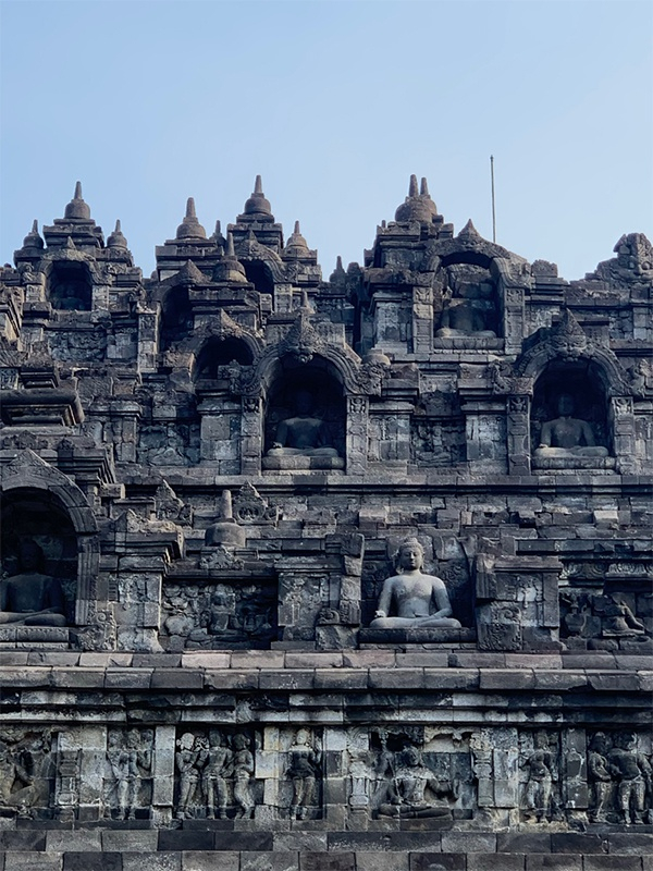 抛开浮雕中蕴含的宗教价值,婆罗浮屠本身的雕刻艺术已经让人啧啧称奇。更有趣的是,虽然是佛教的建筑,但受到印度教的影响,许多花纹和装饰也融合了印度教派的元素。两种宗教文化和谐共存,甚至包括后来伊斯兰教文化的进入,婆罗浮屠本身已不仅仅是佛教徒膜拜与守护的地方。