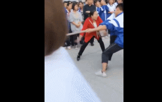 在这位大妈之后,越来越多的“隔空助威”人才被发掘出来。今年9月份,辽宁抚顺一所学校的拔河比赛上,一位老师“轰鸡式助威”也让网友忍俊不禁。