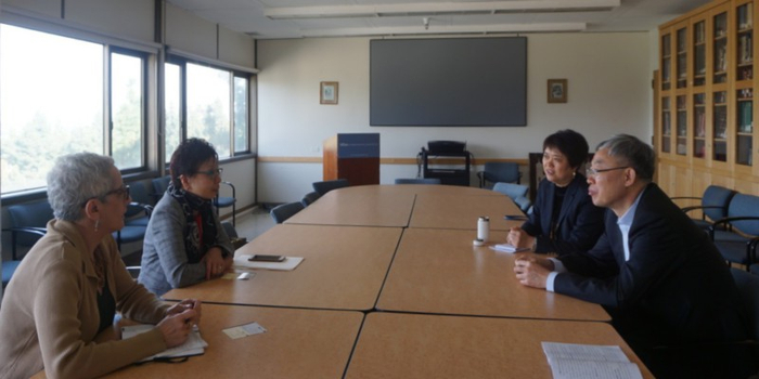 加州大学洛杉矶分校分管国际事务的副校长Cindy Fan 首先转达了Gene Block校长对代表团一行的问候。双方回顾了两校在大气、天文、生命科学等领域多年来富有成效的合作。吕建正式邀请Gene Block校长出席2020年5月即将在我校举行的“首届江苏中外知名大学校长协作会”,双方就签署两校全面合作备忘录达成共识。访问过程中,代表团还参观了加州大学洛杉矶分校全球事务部及下属各人文社科国别研究中心。随后,代表团一行还与我校校友陈涌教授会面,并访问工程学院实验室。代表团详细了解加州大学洛杉矶分校工程学方面的学科重点并探讨了与其合作的机制和具体课题。
