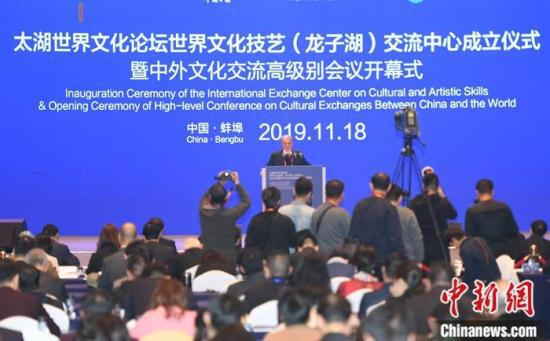 11月18日,太湖世界文化论坛世界文化技艺(龙子湖)交流中心成立仪式暨中外文化交流高级别会议在安徽蚌埠的“湖上升明月”古民居博览园举行。中新社记者 韩苏原 摄