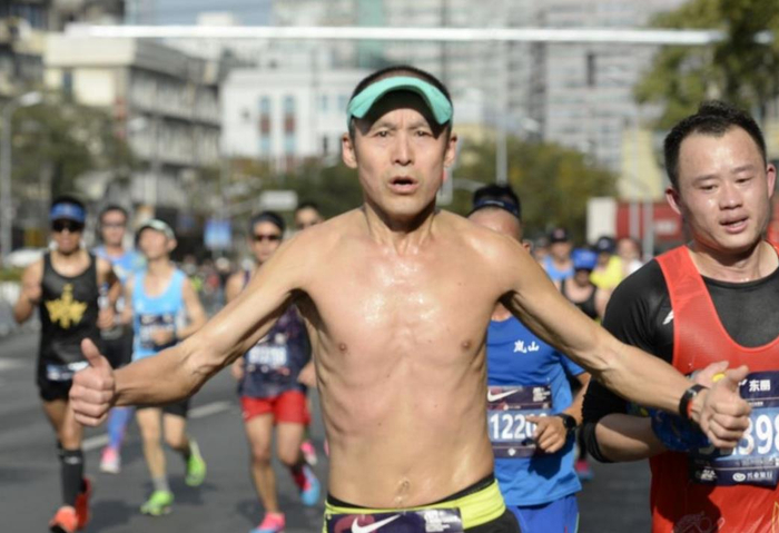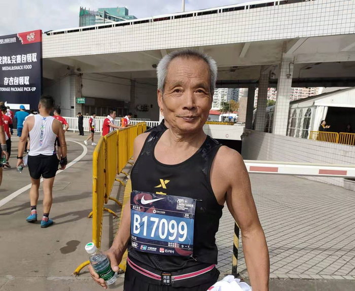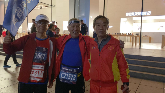 来自北京的杨宝成,在68岁的年龄完成了34次正式马拉松比赛。“我在路上有一个小孩喊我‘帅哥加油’,我当时心里很美,很感谢他!”说完,杨宝成哈哈地笑了起来。