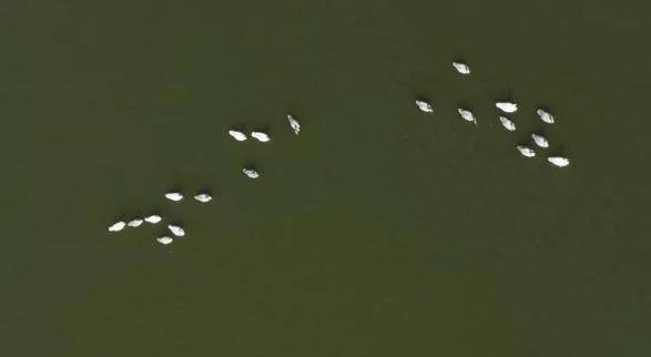 15日上午8点多,我看到又飞来一批,大概有10多只,但是它们没停下来,在湖面上盘旋了一会儿,飞走了。