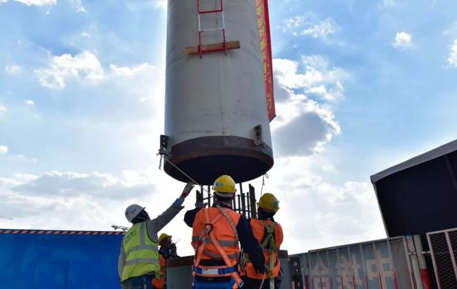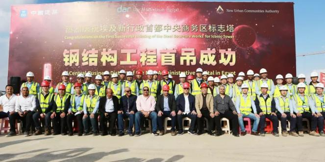 埃及新首都CBD的标志塔工程,系由钢结构外框和钢筋混凝土核心筒构成,总建筑面积26.7万平方米,建筑高度385.8米,地下2层,地上78层。其中钢结构单件最大重量28吨,总用钢量将达到18000吨,整体截面尺寸复杂,加工和安装难度大。与此次首吊钢管柱相同的钢构件还有15根,它们将以内倾1.5度形式安装在标志塔核心筒周围,在整个标志塔结构中扮演着非常重要的角色。