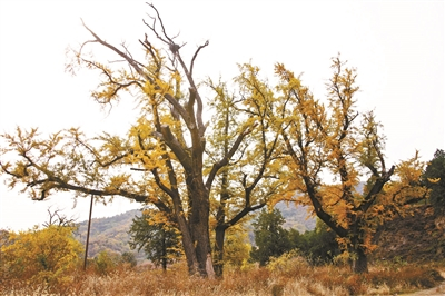 崇化寺遗址位于门头沟区龙泉镇的浅山区,虽为区级文保单位,但古建筑已经所剩无几,唯有三株古银树伟岸参天,见证着古刹的兴亡。近日,北京市文物保护协会会员范纪萍反映,三株守寺古银杏树是崇化寺遗址的历史地标、是古遗址上的“活文物”,但长势逐年衰弱,不知还能存活多久,希望相关部门能够采取有效措施,尽可能延长古树的寿命。