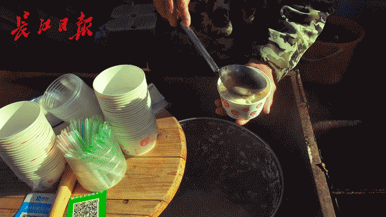 早上8点,从小娃娃到老人,前来买豆腐脑的人多了起来。“我做的豆腐脑,周围好多家庭都吃了三代人了。你看这个客人,从前他带着上小学的伢来买我的豆腐脑,现在他又带着上幼儿园的孙子来了。”为顾客打豆腐脑,一勺两勺三勺四勺五勺……徐耀清总是装得满满的。