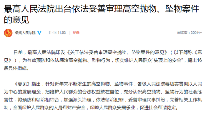 因高空抛物造成伤亡的案例层出不穷