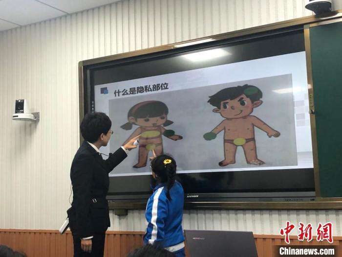 中新网吉林11月19日电 (石洪宇)19日,吉林省蛟河市人民检察院检察官走进当地学校的课堂,向小学生们讲授如何预防性侵。这所学校的师生通过录播或直播的方式观看了此次课程。