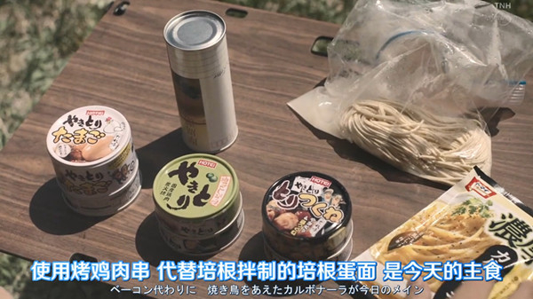 作为露营老手,健人和七子的装备都十分到位,唯一能区别他们的则是两人对于露营食物的不同态度。健人十分依靠日本发达的罐头食品,并且还会在它们的基础上加入自己的创新:无论是鸡肉罐头做的意大利面,还是加了芝士和土豆的鲭鱼罐头焗饭都令人垂涎。而七子则相信在露营地可以采集到的自然食材,不管是海边钓上的鲜鱼,还是深山里采集的蘑菇都会成为她饱腹的关键,只是她还需要时刻注意别吃了有毒的生物。