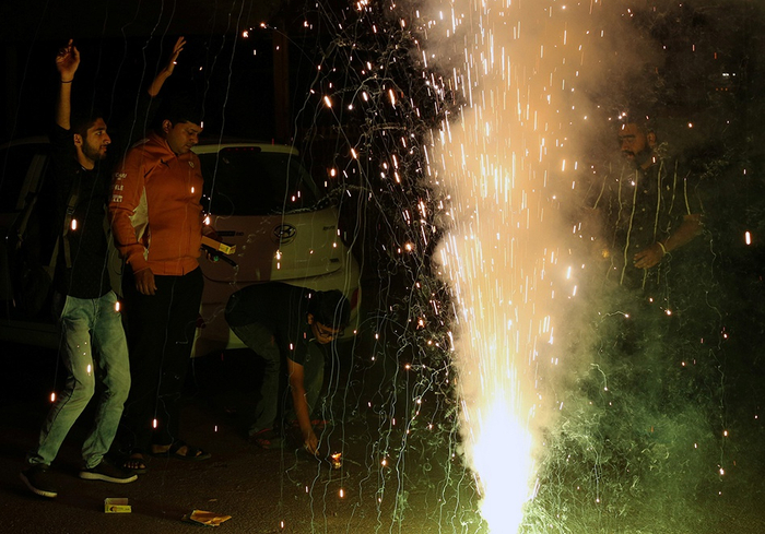 当地时间10月27日,印度昌迪加尔,人们燃放烟花庆祝排灯节。 视觉中国 图