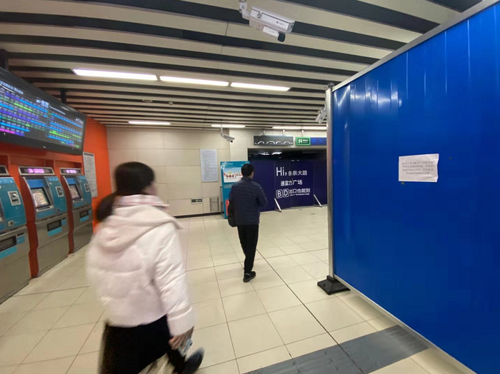昨天下午,记者来到10号线双井站北站厅看到,售票窗口前的一小块区域已搭起蓝色围挡。由于围挡处于安检区域和进站闸机之间,围挡四周都张贴了这份提示。在北站厅东侧,一道粉红色的围挡堵住了换乘通道,不过通道中央的楼梯扶手却裸露在外。从站台穿到南站厅,左手边两条宽敞的换乘通道被蓝色隔离挡住。记者从下方的缝隙里看到,换乘站厅内部已基本完成内部装修,不过地面瓷砖仍未铺设完成。