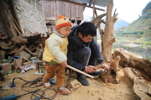 为了陪伴孩子,选择从城市回到家乡谋生的男人。(新闻图片)