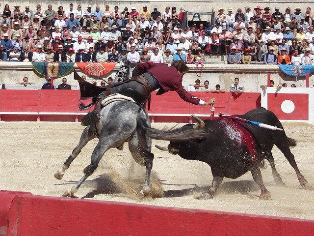 据说,骑马斗牛(Rejoneo)源自中世纪的骑士比武。当年,在全欧洲的比武竞赛中丧生的人数,甚至超过了几次十字军东征的骑士损失总和。因此,连续几任教皇以开除教籍相威胁,严令禁止比武。
