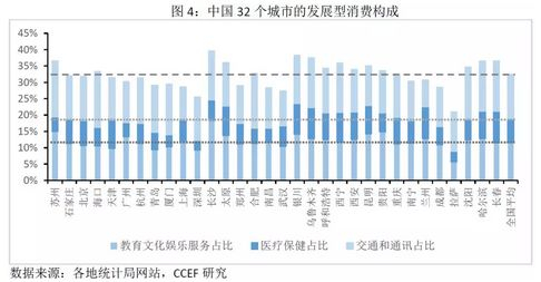 各城市的发展型消费支出主要取决于医疗保健和交通通信。其中医疗保健支出较高的地区通常是政府财政支出在医疗教育及社会保障上投入较低的城市,例如银川、乌鲁木齐、兰州及长春。