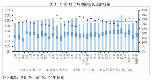 从具体城市来看,苏州的生存型消费比例最低,为55.8%,而深圳和上海的生存型消费比例为最高和次高,分别为66.2%和63.9%,均受到高房价的影响。中部地区中,长沙的生存型消费比重为全国最低,为50.7%,主要受益于当地较低的居住成本。同时,其发展型消费比重为全国最高,用于教育文化娱乐的支出比重高达18.4%,远高于第二名苏州的15%。西北部城市的生存型消费较低,如银川、乌鲁木齐、呼和浩特和西宁,这与当地物价水平较低所耗费的食品支出较少以及居住成本较低有关。东北地区中,长春受当地高居住成本的牵制,其生存型消费比例最高为54.7%。