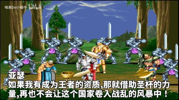 梅林对亚瑟说,只有找到传奇说中的圣杯才能治愈这片土地,恢复和平与秩序,带来繁荣。亚瑟就和两位最要好的朋友——圆桌骑士兰斯洛特(Launcelot)和珀西瓦尔(Percival),踏上了寻找圣杯之路(剧情其实是从加里波第国王那边夺取圣杯)。
