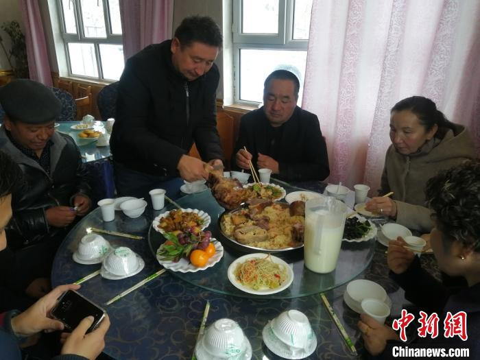 参加出嫁礼的宾客品尝着美食。 古丽米娜 摄