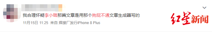 原标题:网友调侃李小璐离婚宣言疑用“狗屁不通文章生成器”原创者:成爆款挺羞愧