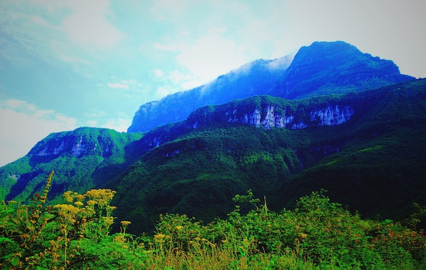 伫立乡政府楼前,眼前的大瓦山如一幅不时变幻的宏大画卷。弥漫在大瓦山腰的云雾,似大海的波涛,顶平壁绝的大瓦山恰似一艘巨轮,在流动的云波雾浪里乘风向前。簇拥在大瓦山周围的一座座尖顶山,如波涛中时隐时现的险恶岛礁,又如一艘艘奋力挣扎的帆船。