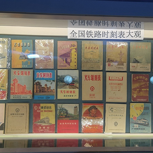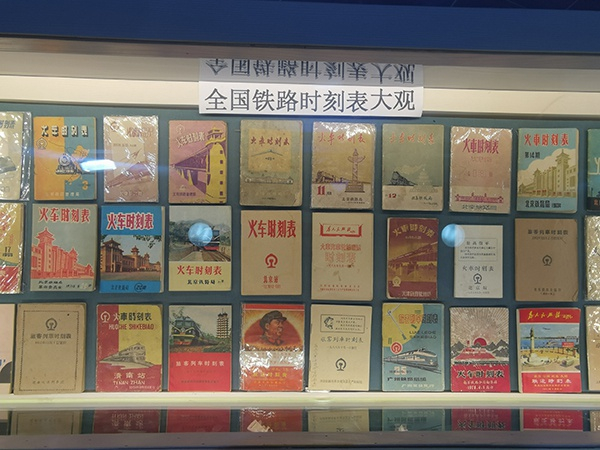 第十五届中国国际现代化铁路技术装备展上,不同时期列车时刻表展出 本文图片均由澎湃新闻记者 李文姬 摄