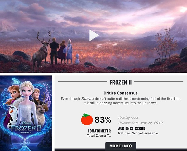 《冰雪奇缘》目前的“烂番茄”好评率达到83%