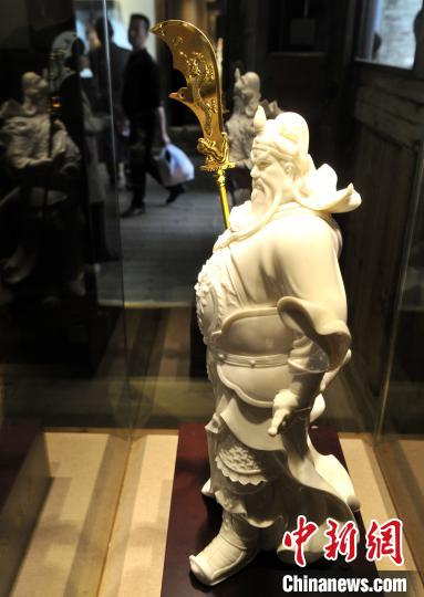 图为福建德化陶瓷《关公像》。德化县地处福建省中部,与江西景德镇、湖南醴陵并称中国三大近代瓷都,是中国陶瓷文化的发祥地之一。 张斌 摄