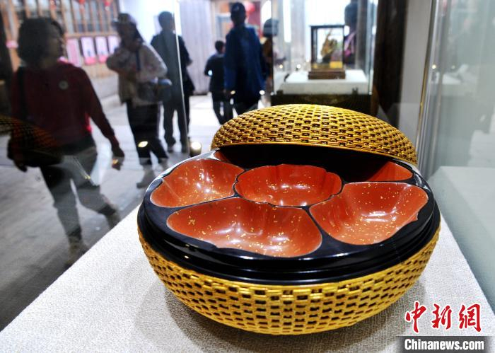 图为民众在参观展示的脱胎漆器。脱胎漆器是福州三宝之一,已有二百多年历史。 张斌 摄