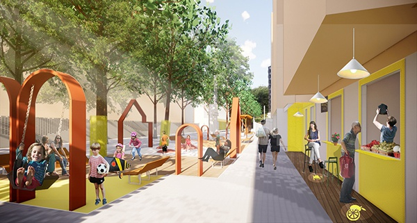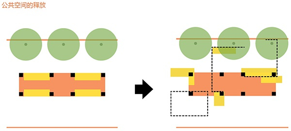 总结下来,我们觉得这里首先要能满足居民们安全舒适的通行需求;其次又要提供一个舒服的可停留的公共社交场所,可以买卖东西,聊天;最后,也许是作为母亲的私心,我想给孩子们一个玩耍的空间。