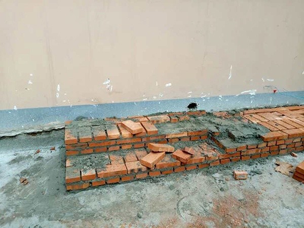 最早施工的是道路北面被封作围墙的那一段,因为预算有限,我们在的墙根设计了一段一段的砖砌座椅。可当师傅把一块块砖头砌到第三层时,突然有人冲出来阻止,并且直接上手,把座椅给拆了。