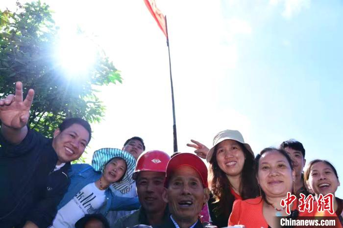 图为丁光全(居中穿蓝色衬衣者)与当地党员一起升旗。 苏展 摄