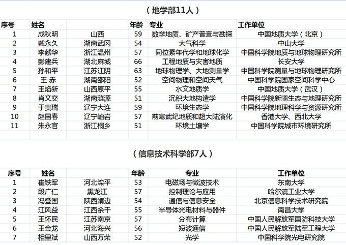 11月22日,中国科学院公布2019年新当选院士名单,共64人。
