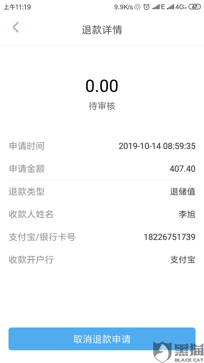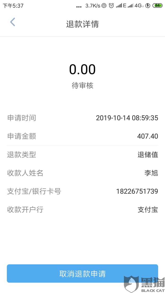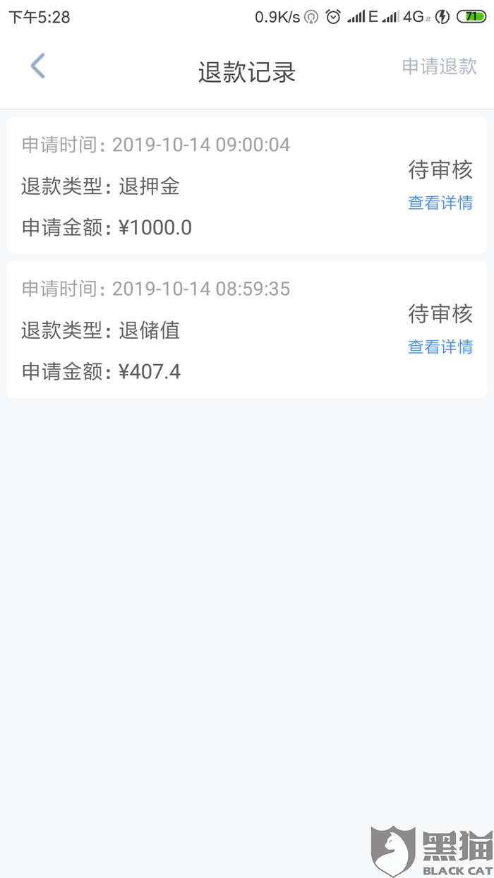 黑猫投诉:投诉易开出行在申请退款38天后不退押金和储值