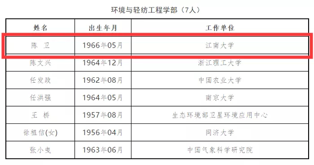 原标题:江南大学陈卫教授当选中国工程院院士