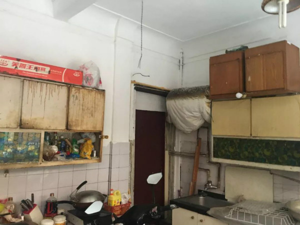 图说:改造前,乱糟糟、油腻老化的公共厨房间。