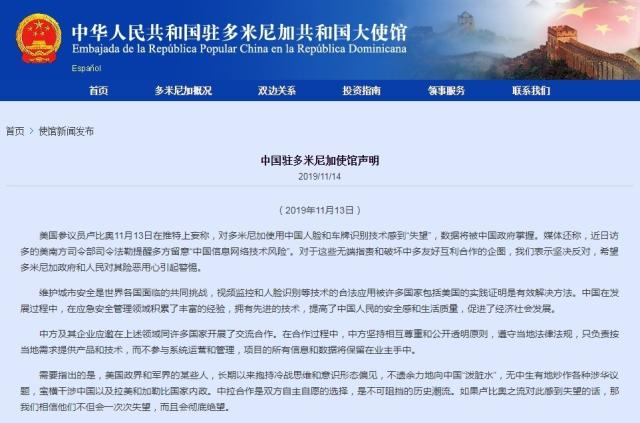 中国驻多米尼加使馆声明截图