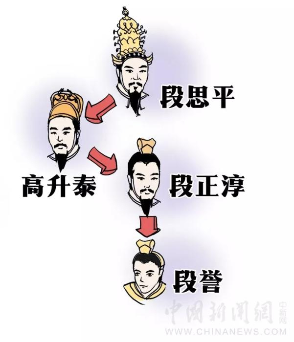 两年后,高升泰病逝,临终前迫于压力,立下遗嘱将皇位还给段氏,而这位“接盘”的人正是段正淳。