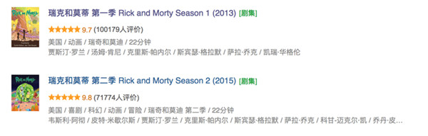 热度差不多排在第二位的《马男波杰克》,无论从单季评分还是打分人数,都落后于《瑞克和莫迪》一档。