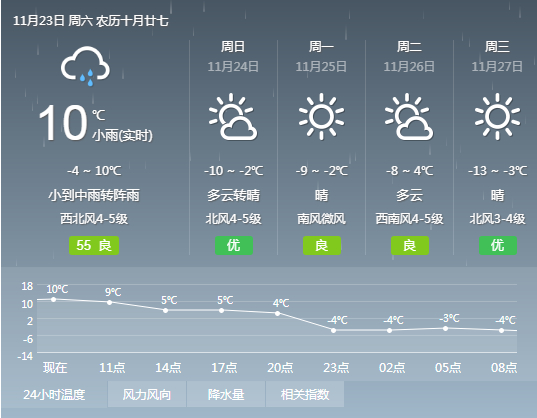 沈阳市气象台2019年11月23日06时50分发布: