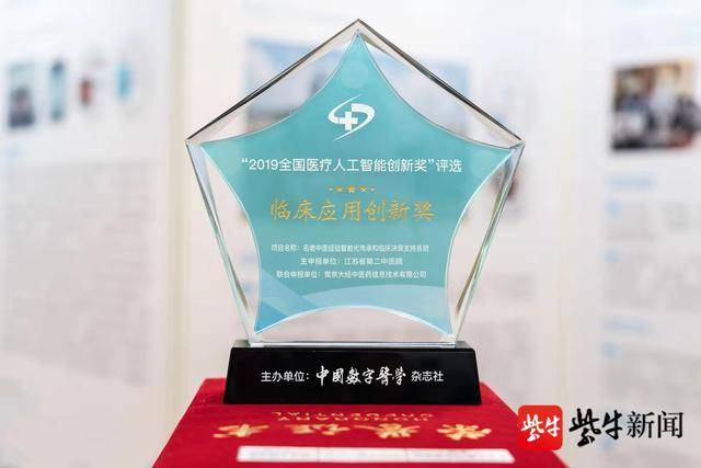 在11月23日,由国家卫生健康委医院管理研究所指导、《中国数字医学》杂志社主办的“2019中国数字医学高峰论坛——人工智能与未来医学”在北京开幕,会上,由江苏省第二中医院与南京大经中医药信息技术有限公司联合申报的“大经名老中医经验智能化传承和临床决策支持系统”项目获得了大会“2019全国医疗人工智能创新奖——临床应用创新奖”,这是所有获奖项目中唯一一个与中医相关的医学人工智能创新奖项。