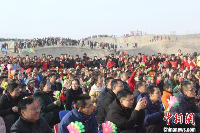 23日下午,新疆库车县冬春旅游宣传推介仪“奇遇沙世界?乐享古龟兹”首届沙世界文化旅游活动正式启动。来自四面八方的民众观看节目。 陶拴科 摄