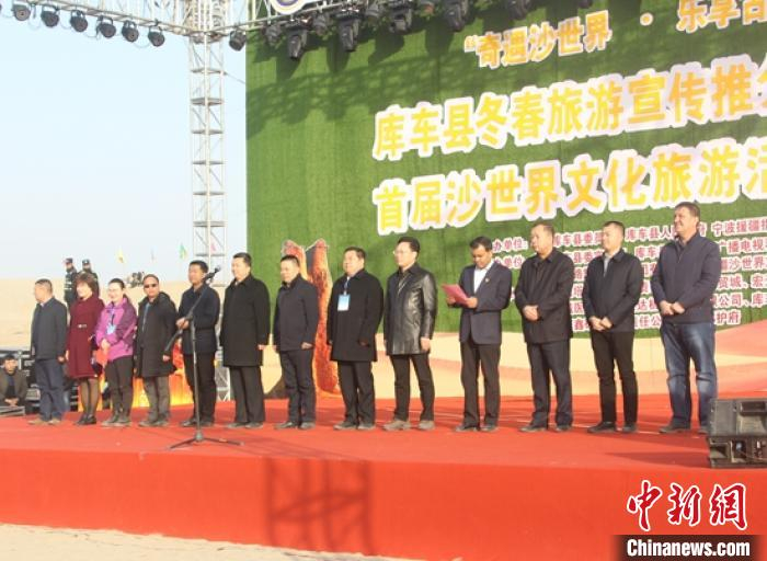 23日下午,新疆库车县冬春旅游宣传推介仪“奇遇沙世界?乐享古龟兹”首届沙世界文化旅游活动正式启动。 陶拴科 摄