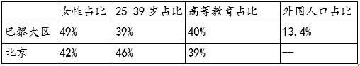 表2 巴黎大区、法国及北京、中国人口构成对比