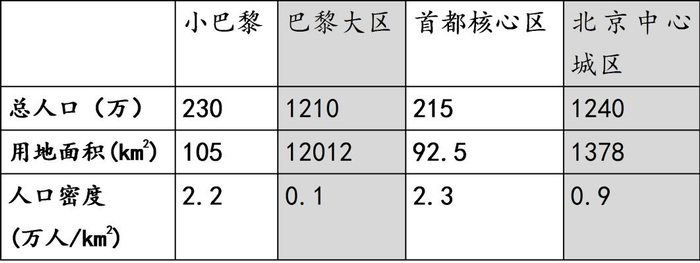 乍一看巴黎大区人挺多啊,大伦敦区才排第三?但是,如果再考虑到幅员辽阔的大巴黎区总面积,算算人口密度,巴黎大区就远比不上大伦敦区了,而小巴黎确实人口比较稠密。为了让大家对巴黎大区和小巴黎的人口密度有一个较为直观的感受,请见表1。