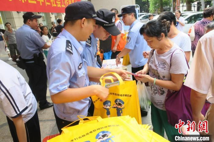 广州海珠区南华西派出所警官正向市民宣传防诈骗知识。广州警方 供图