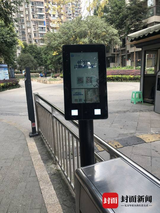 成都海椒市某小区使用人脸识别门禁近一年了,该小区一处入口设置了门禁,左边是刷卡的通道,右边立着一个带有视频和摄像头的人脸识别装置。该装置在运行中,那它到底有什么作用呢?封面新闻记者在该小区观察约半个小时候发现,小区大门完全敞开,人员随意进出,门卫也并没有让人拿出身份凭证。