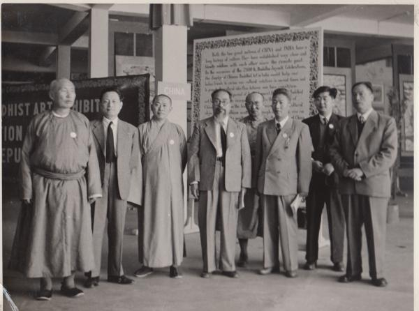 1957年,常任侠在印度新德里国际佛教艺术展览会中与冯友兰、巨赞、赵朴初等合影